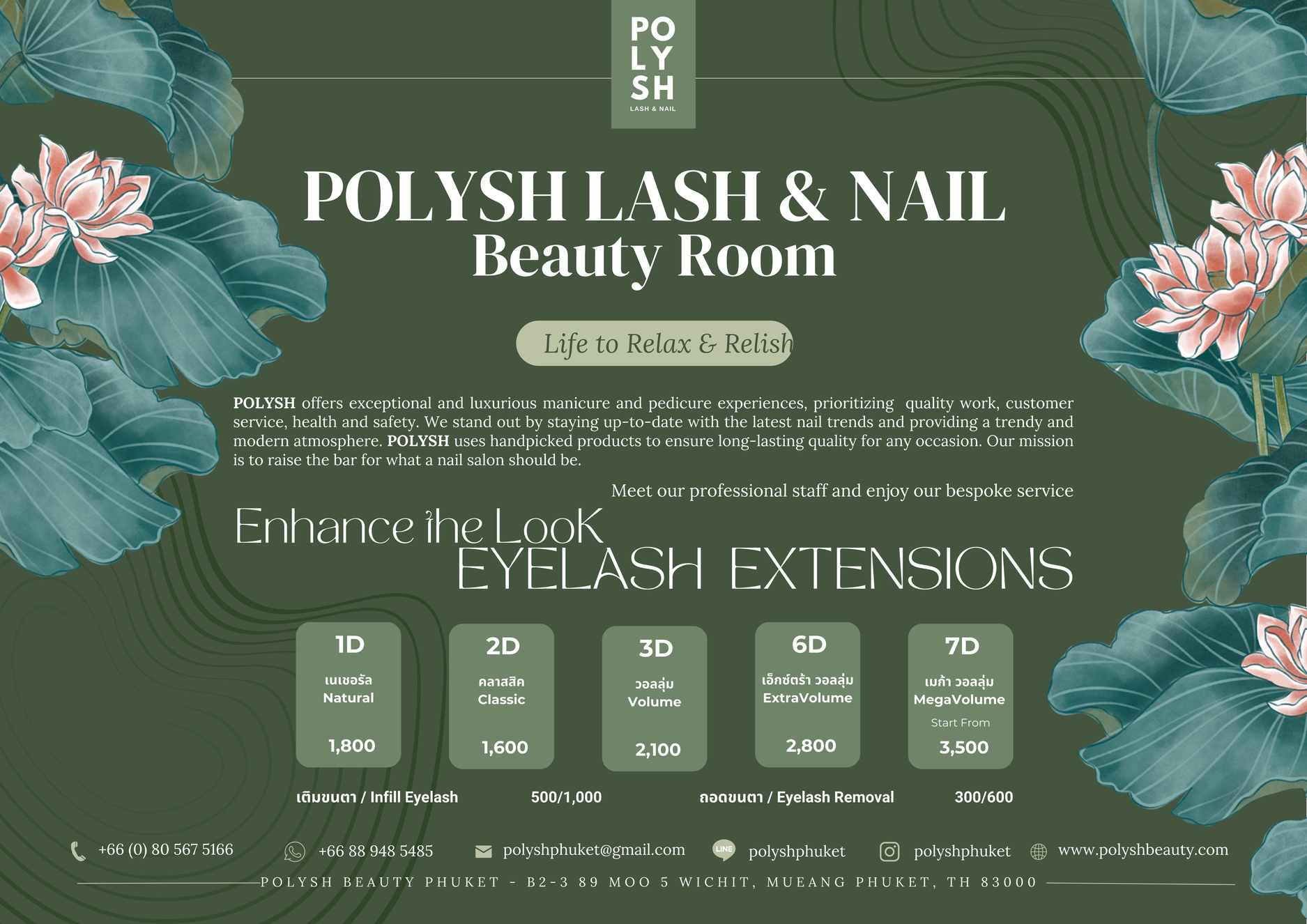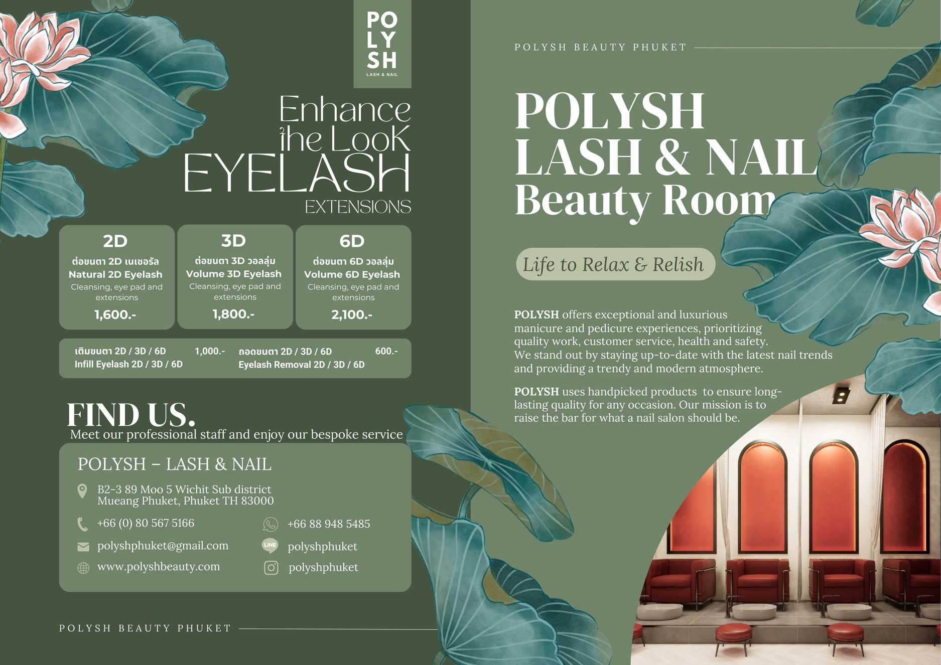 Our premium lash & nail boutique, POLYSH, is located at Bukis Phuket on the 2fl. of the building right next to Decathlon.